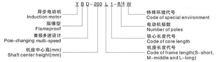 YBD系列防爆雙速/變極調(diào)速電機(jī)型號代表意義: