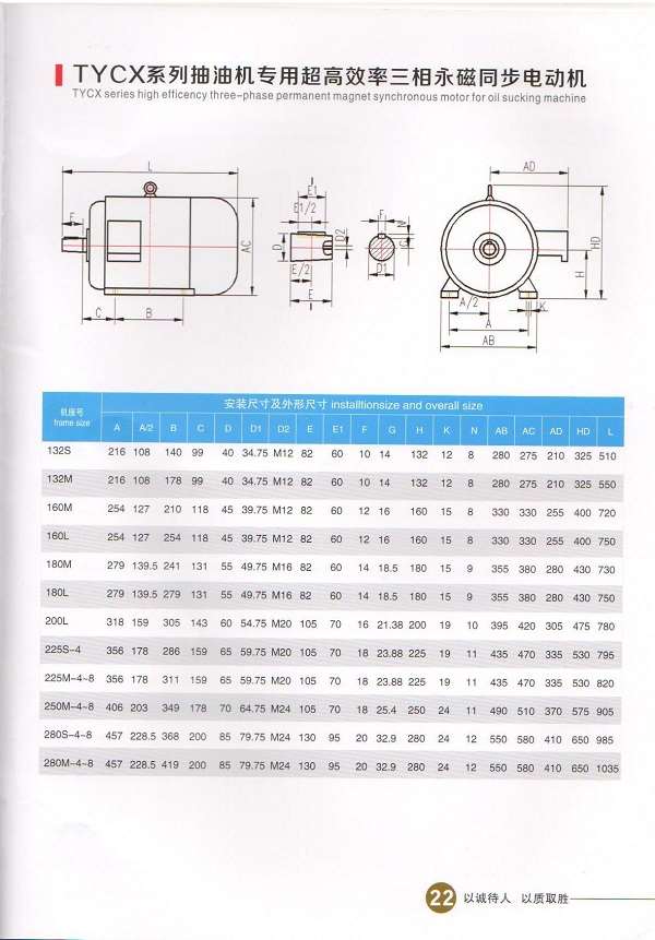 TYCX抽油機用永磁同步電機為全封閉、自扇冷結(jié)構(gòu)。在相對于同規(guī)格異步電動機均具有更高的效率、經(jīng)濟運行范圍寬、具有顯著的節(jié)能效果,電機溫升低、在額定負(fù)載下,電機的溫升在30-50k。