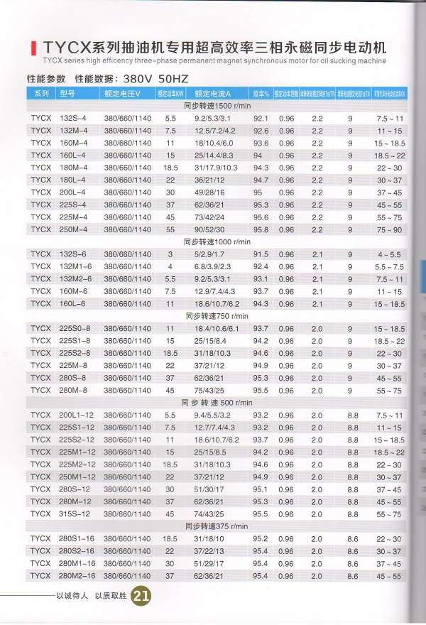 TYCX系列抽油機高效率三相永磁同步電動機參數(shù)