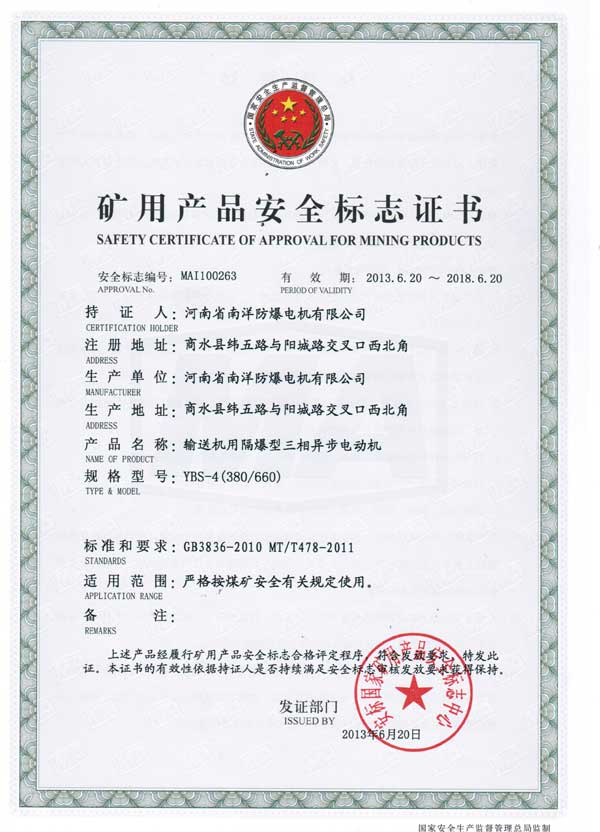 輸送機防爆電機主要用于煤礦井下的皮帶輸送機,刮板輸送機等配套電機,機座由鋼板焊接成形,風罩,接線盒,絕緣結構采取加強措施,防止碎石墜落砸傷電機,已適應煤礦井下的復雜環(huán)境。防爆性能符合GB3836.1《爆炸性環(huán)境用防爆電氣設備 通用要求》和GB3836.2《爆炸性環(huán)境用防爆電氣設備隔爆性電氣設備d》的規(guī)定,適用于煤礦井下具有可燃性氣體或煤塵與空氣形成爆炸性氣體環(huán)境的場所,防爆標志為ExdI Mb。